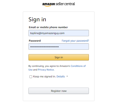 1. Log in to your Seller Central Account.