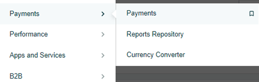 2. Click on the "Payments" tab at the left part of the page. Select "Payments".