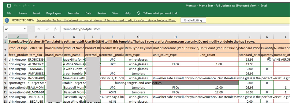 VII. Delete all the rows of the SKUs that you don’t need.