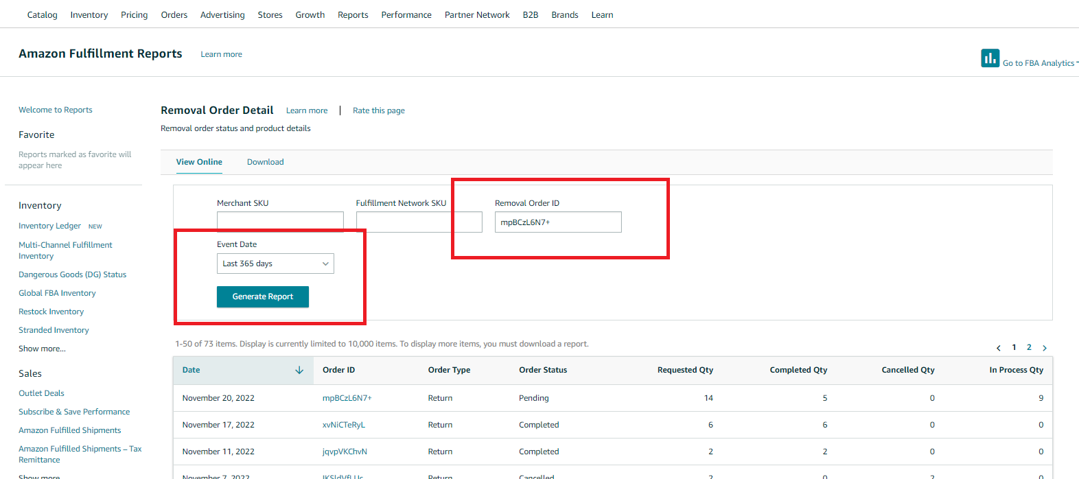 1. Go to Reports → Fulfillment → Removals → Removal Order Detail