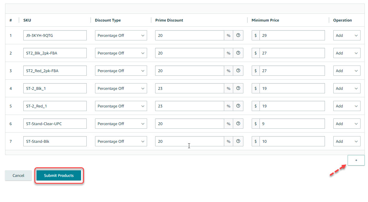 - Click the “+” sign if you need to add more SKUs. The maximum number is 30 SKUs.