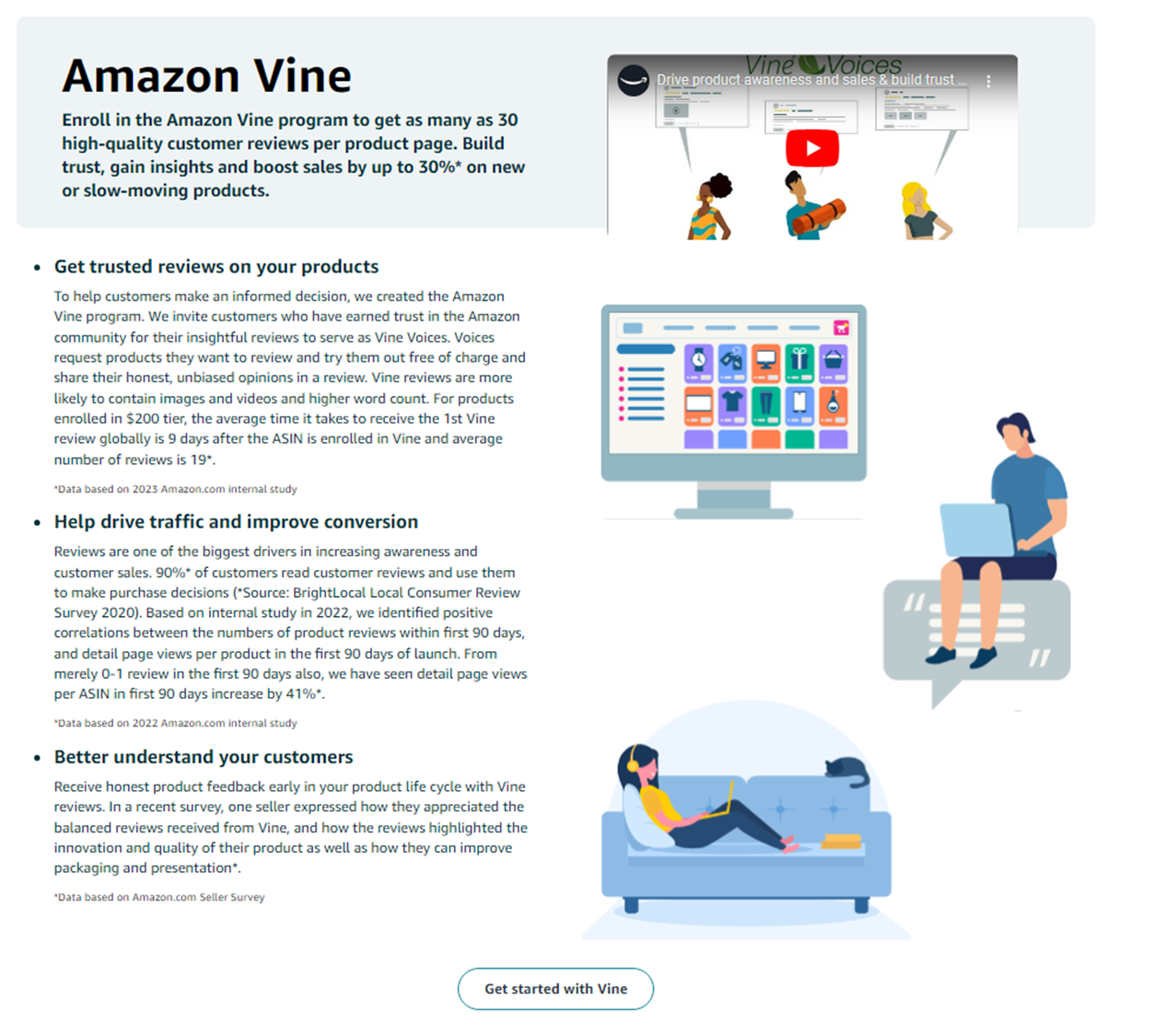 2. Scroll down to the bottom of the page and click on the "Start Enrolling Products into Vine today!" button.