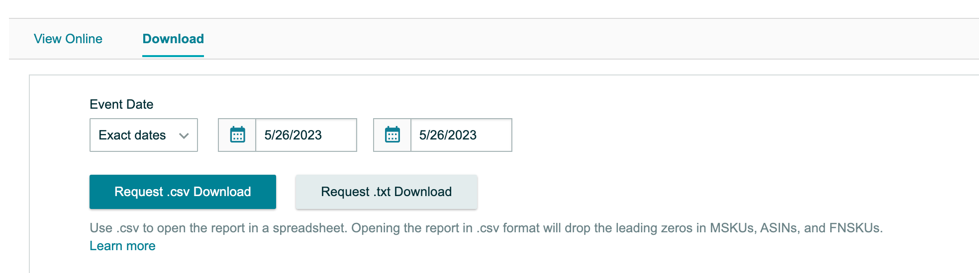 4. If you want to download the report in an excel format, click the "Request .csv Download" button. Alternatively, click the "Request .txt Download" button to download the report in a text format.
