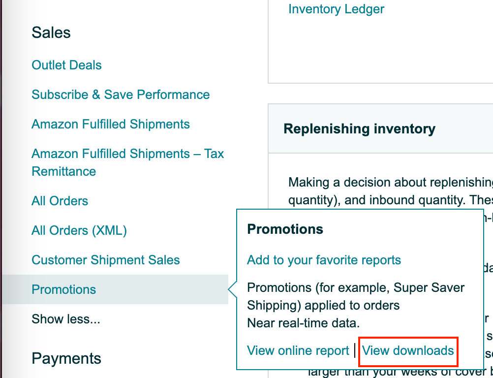 2. Click the "Promotions" link under the "Sales" header on the left-hand side of the page then click the "View download" button.