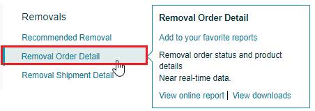 - Under the "Removals" header on the left side of the page, click the "Removal Order Detail" link.