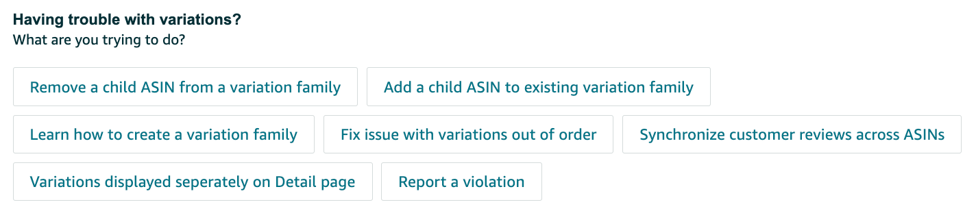 6. Suppose we opt for "Remove a child ASIN from a variation" and complete the required information to submit a ticket. Click Continue.