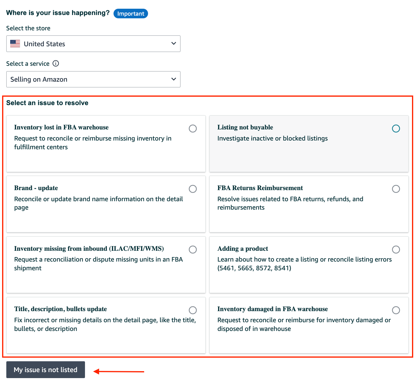 3. On the this page select the issue from the menu or click "My Issue is not listed"