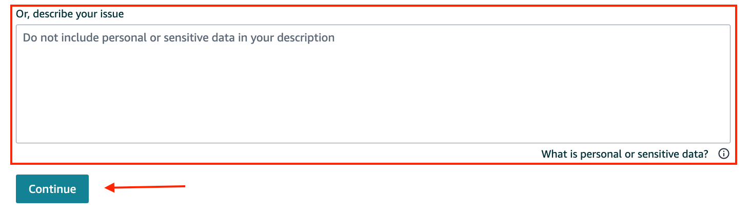 4. Put a brief description of your issue and click continue.