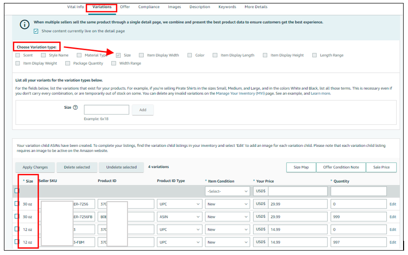Sample scenario: Update the variation theme from Scent to Size-Scent.
