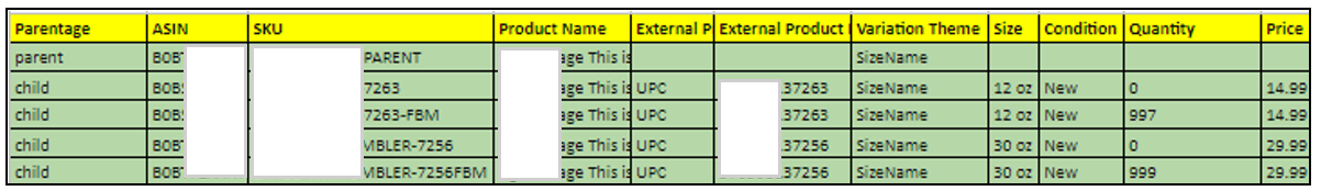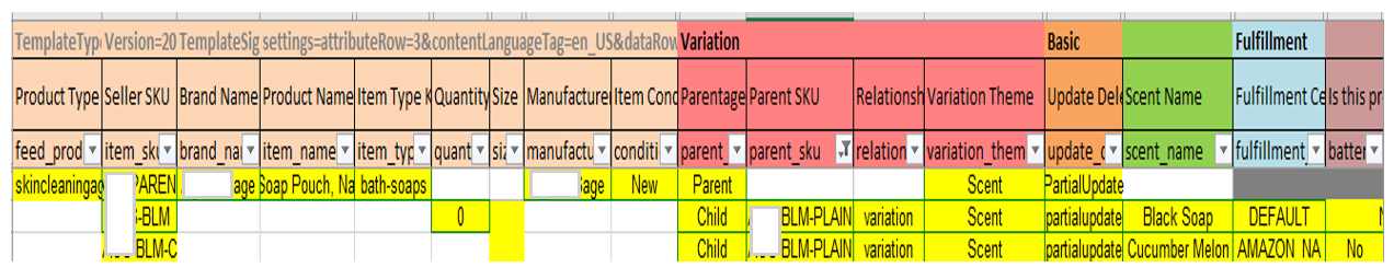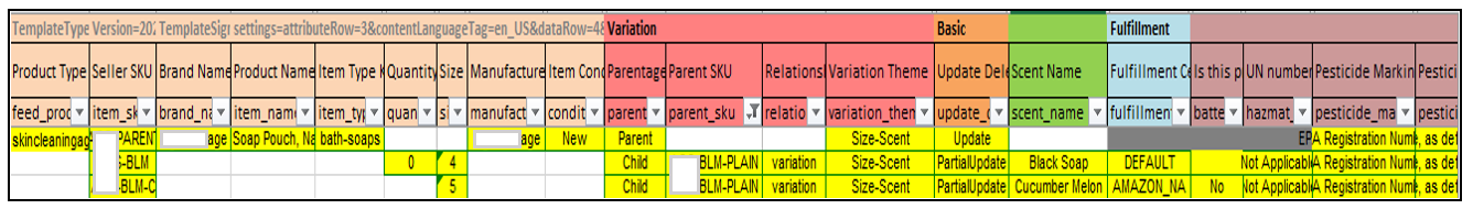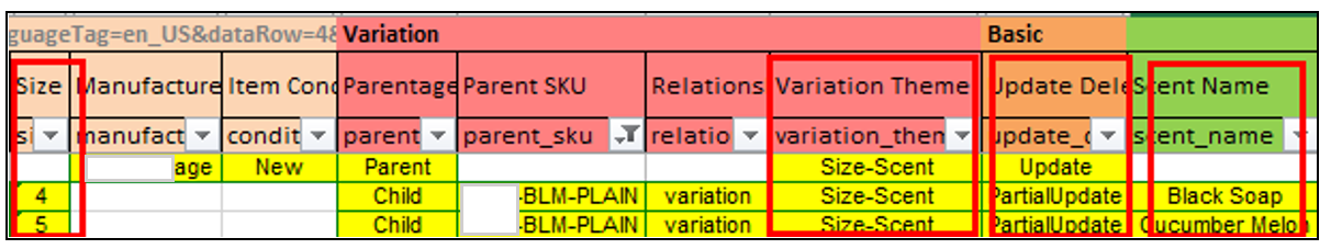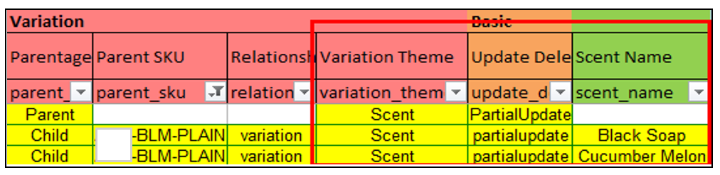 IMPORTANT NOTE: To ensure that the newly assigned variation theme is immediately reflected in the entire parentage, label the parent row as "Update."