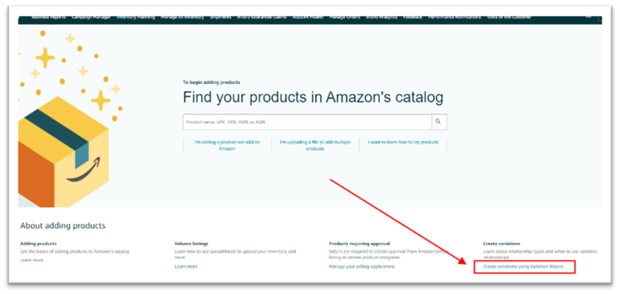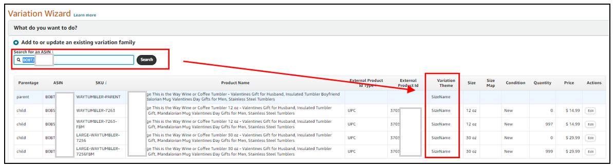 Click the option “Add to or update an existing variation family” to search for an ASIN and review ‘Variation Theme.’