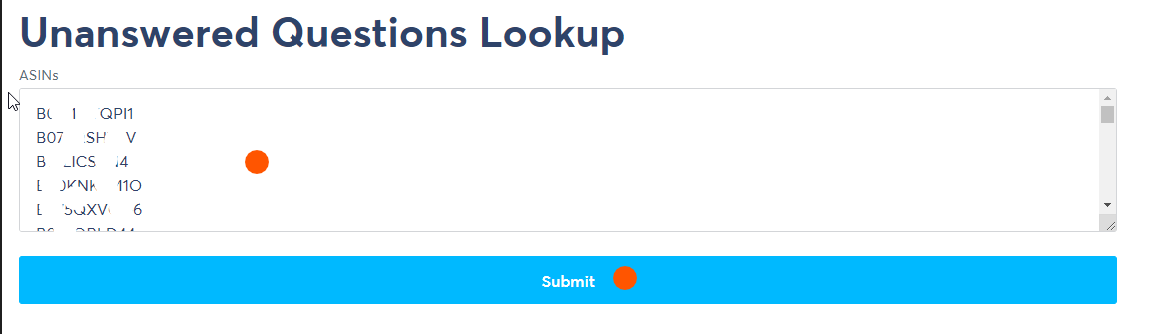 3. Now enter a list of ASINs that you want to check unanswered questions for and hit Submit.