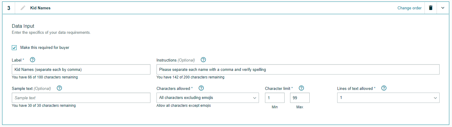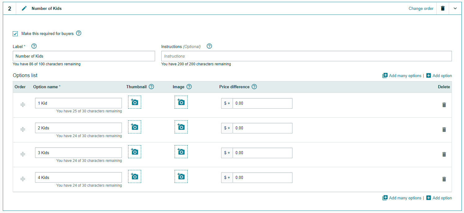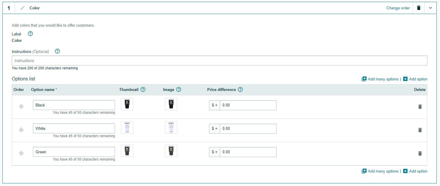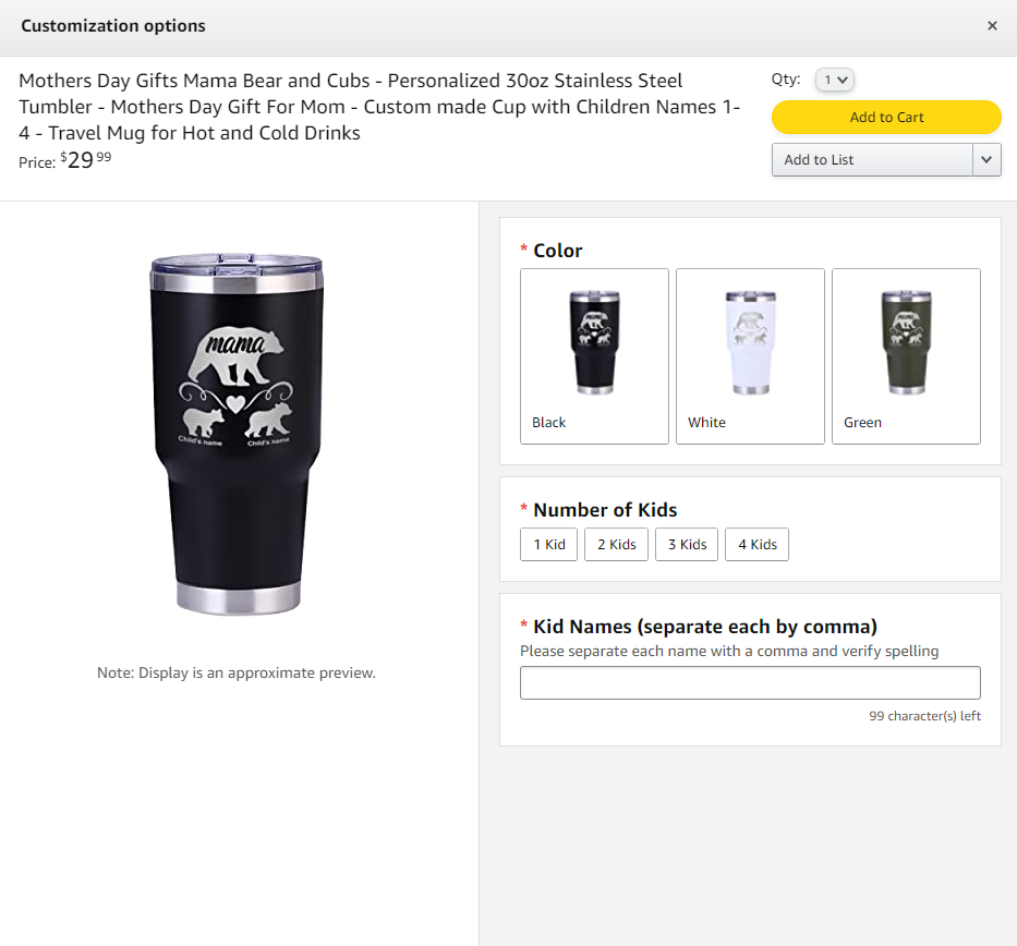 The image below shows how customers view the customization options.