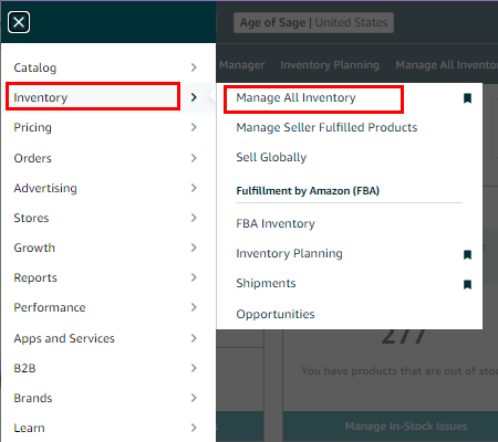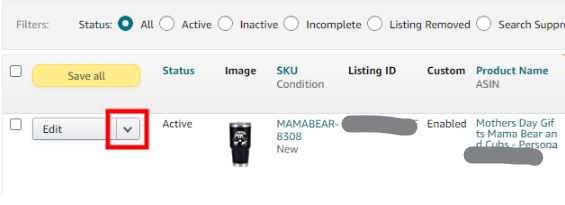 2. Once you have created the skeleton listing, look for it on Inventory > Manage All Inventory.
