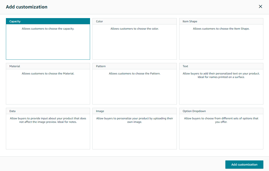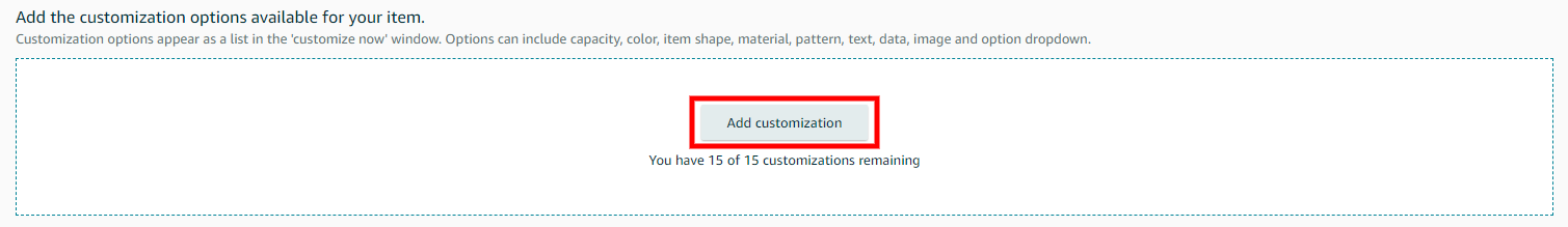 5. Click Add Customization and select the appropriate customization template for your product. You can use up to 15 customizations. Once done, just click Publish.