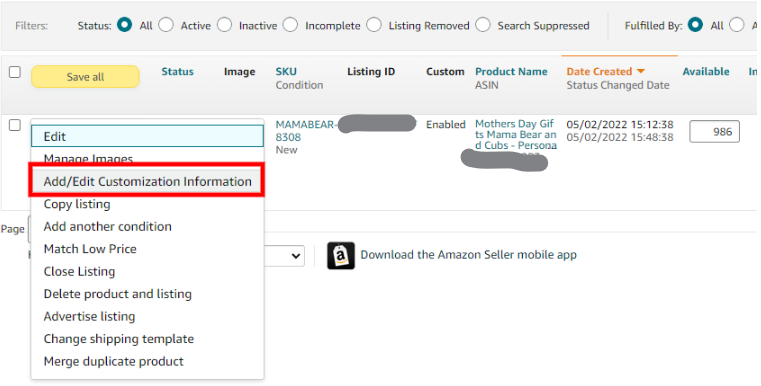 - This needs to have a purchasable offer before you can customize the listing. You should have available inventory and the Offer Start Date, Release Date, and Launch Date should not be set to a future date.