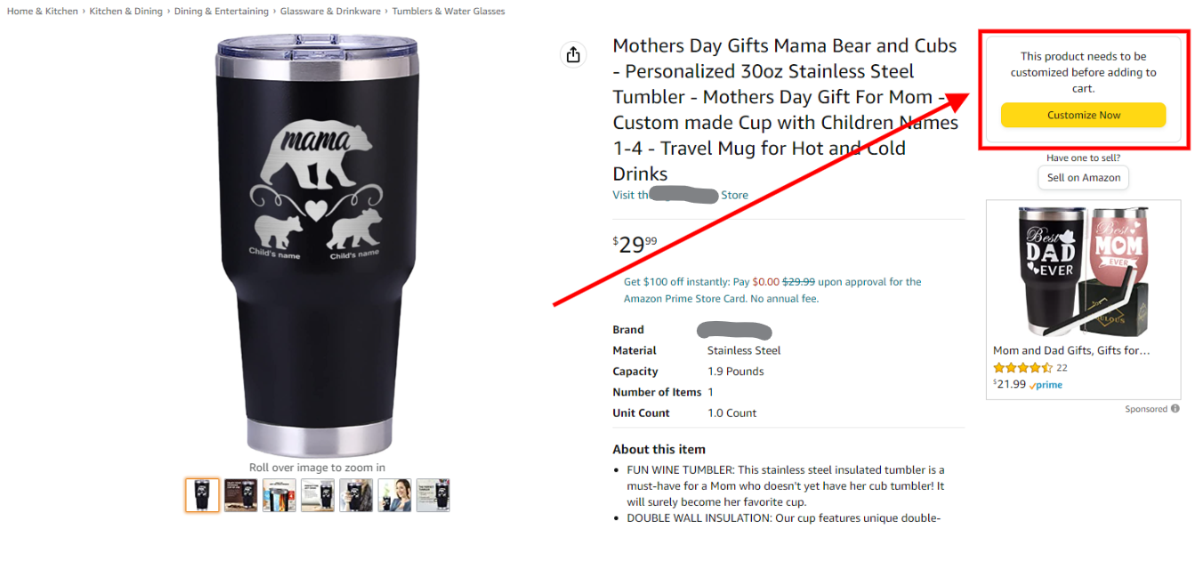 6. If the customization is properly built, there will be a Customize Now button on the PDP. Customers should click this first before they can purchase the product.