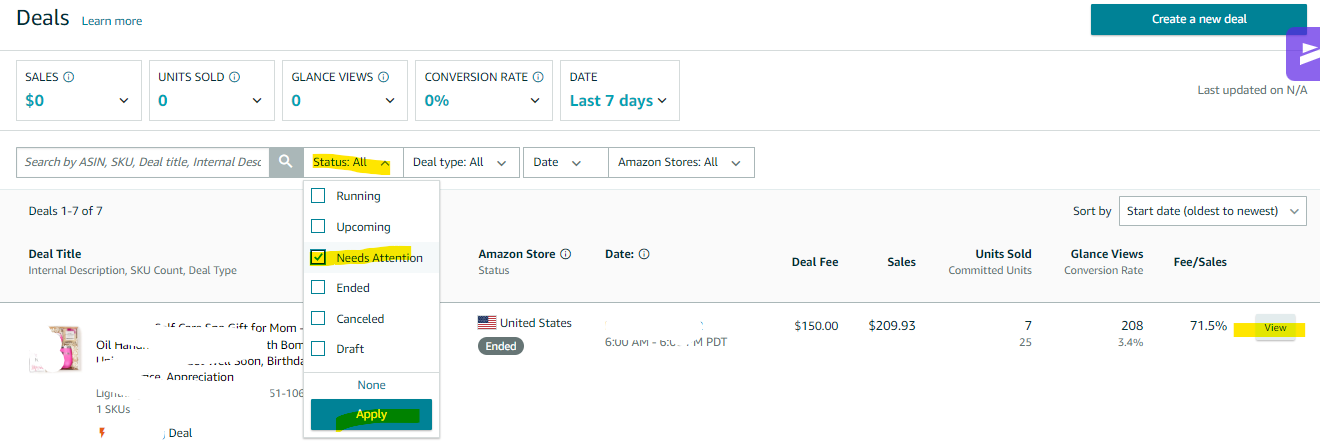 For more information, see Troubleshooting Suppressed and Active Deals Help page https://sellercentral.amazon.com/help/hub/reference/GKN9A84DGTYWYHWY