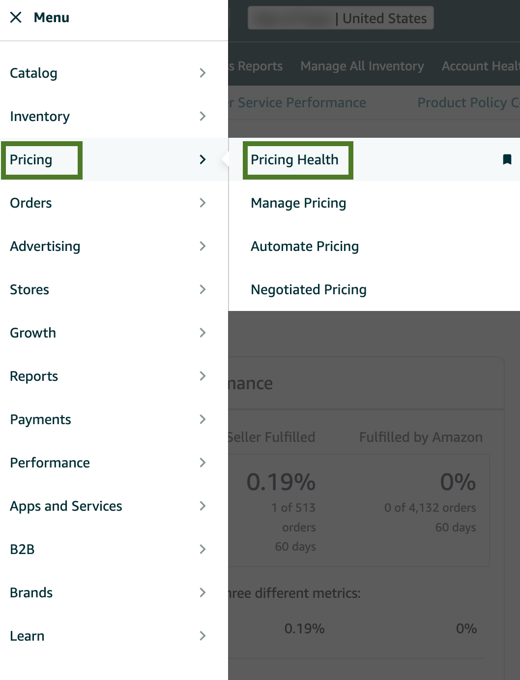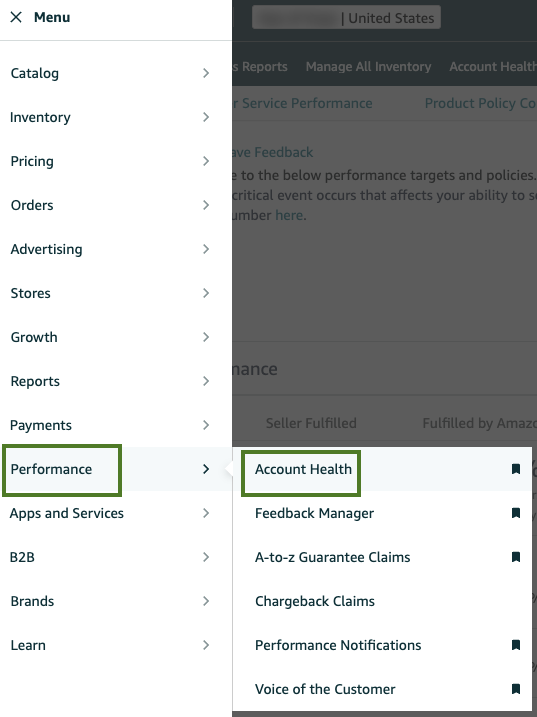 Go to the Menu and click on “Performance” then “Account Health”.