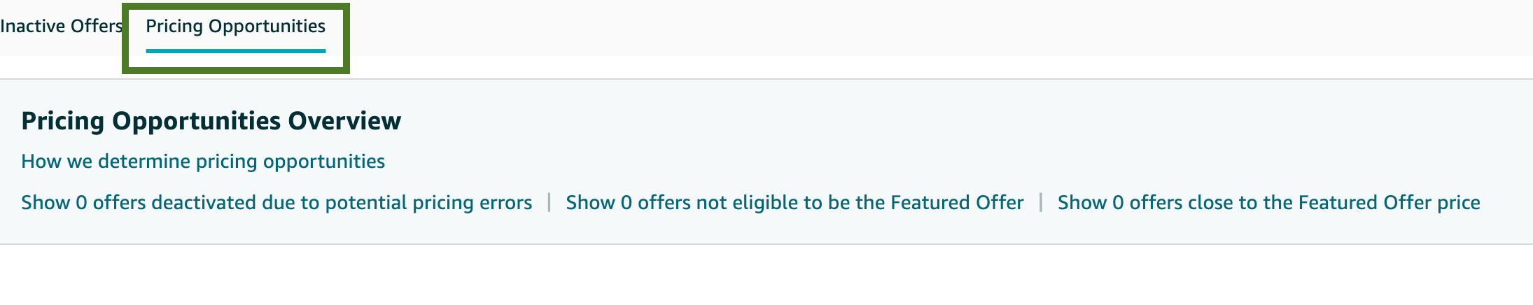 Go to the “Pricing Opportunities” section. Note : If there are eligible ASINs for the featured offer it will show here and just download the report.