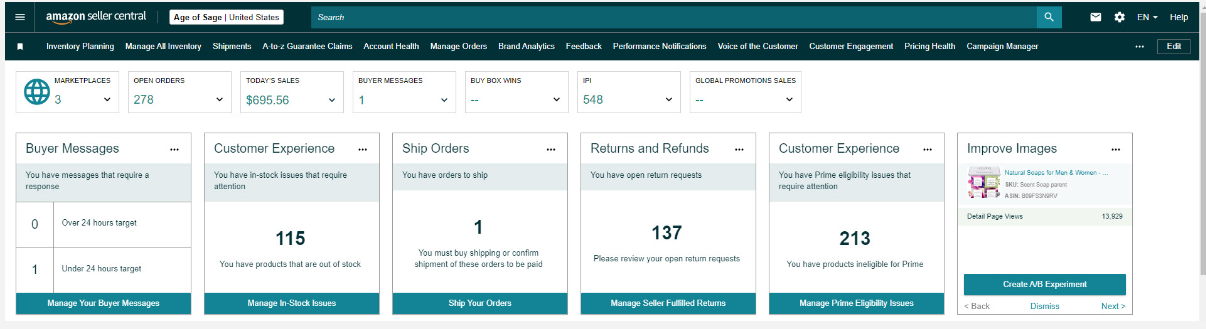 Access the Amazon Seller Central page by clicking the URL: https://sellercentral.amazon.com/