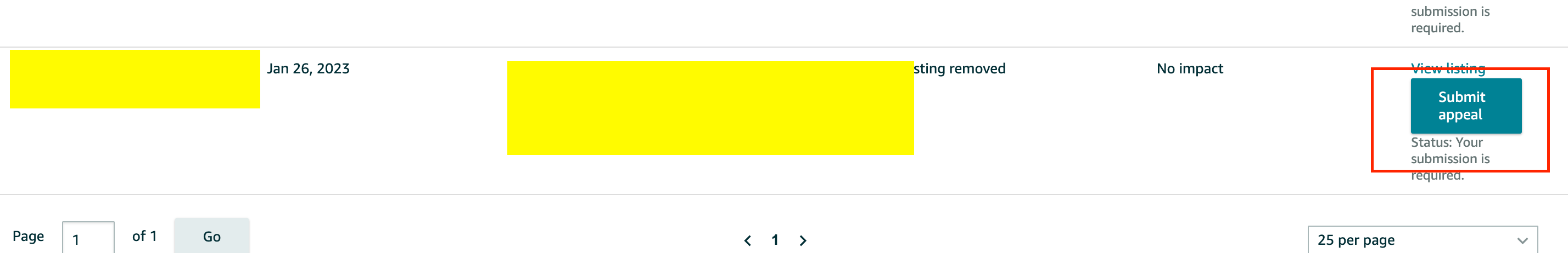 3. Once you found the listing, click the "Appeal" button that corresponds to the ASIN to submit the appeal.