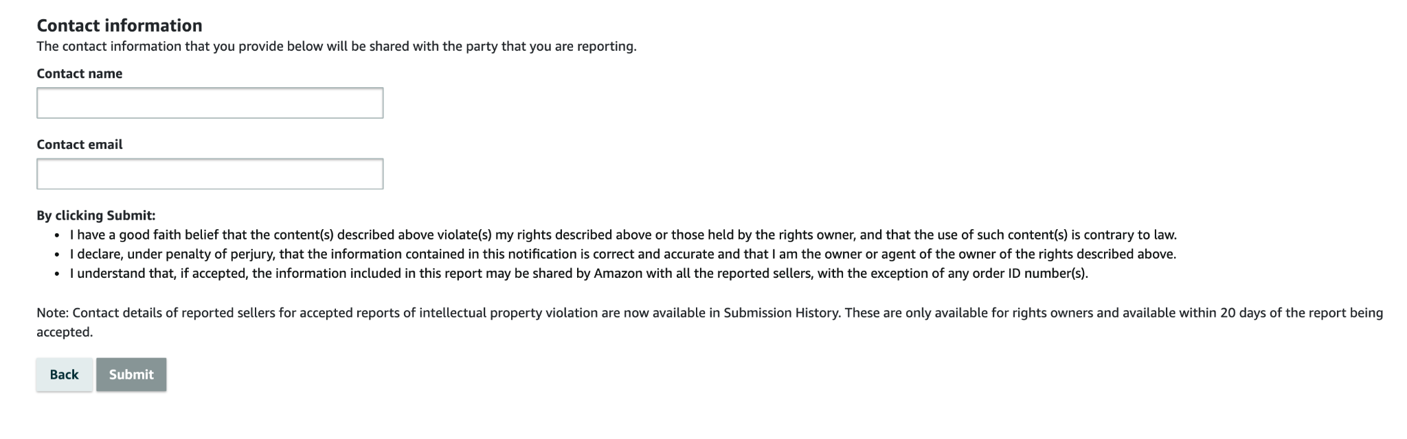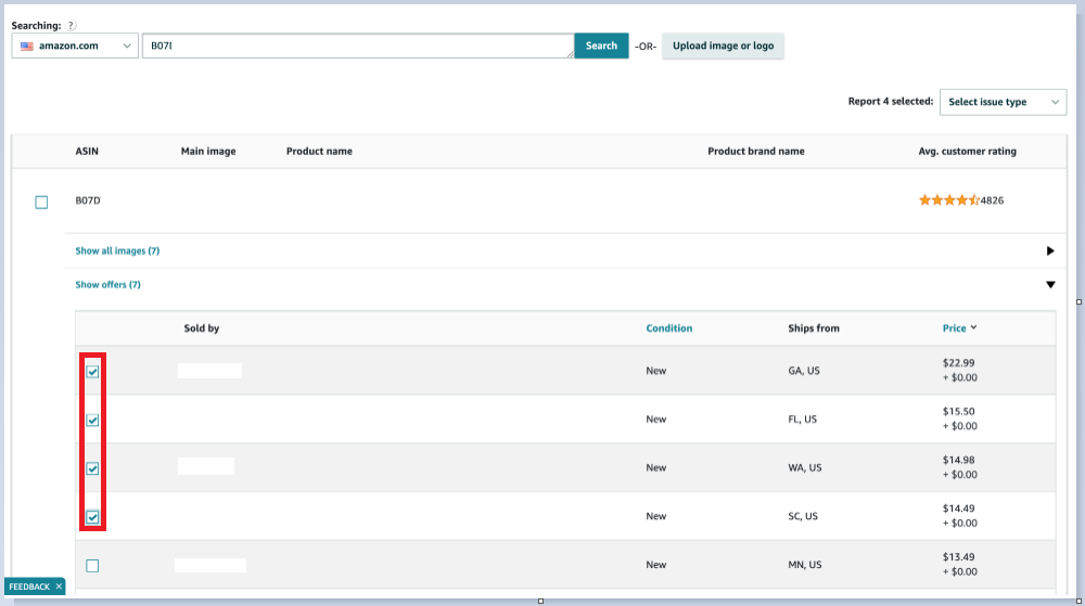 - You must provide the exact ASIN and seller name to report.