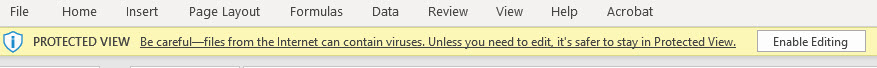 8. Open the downloaded inventory file. This is a protected file. To edit, click Enable Editing at the top of the spreadsheet.