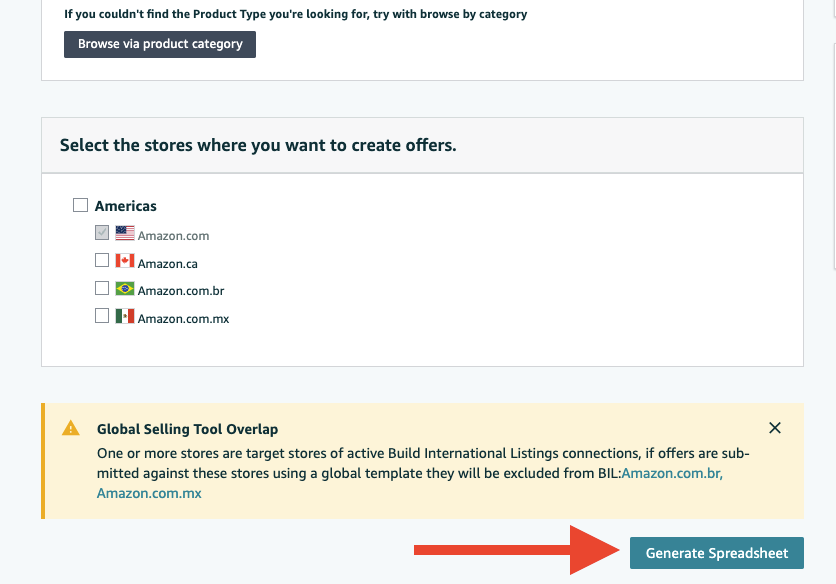 - On the Add Products via Upload page, go to the “Download spreadsheet” tab and choose “Download Product Spreadsheet” under “List Products that are not currently in Amazon’s catalog” option.