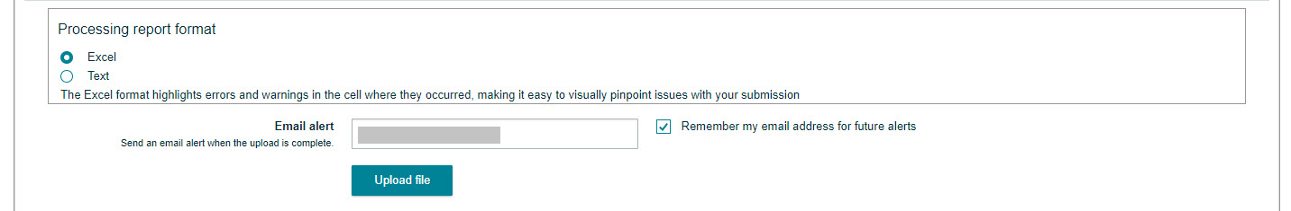 Keep in mind that you’re on the correct seller account before uploading the inventory file. You can fill out the Email alert box using your MAG email to receive the processing report on your email. Put a tick on the box to Remember my email address for future alerts. Then click the Upload file button