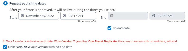 - If there is no other version besides the original and duplicate versions, the original version will go live right after the end date of the duplicate version.