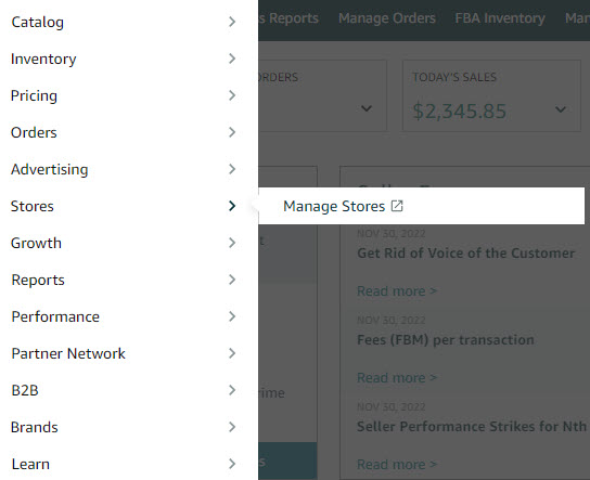 - Go to Stores, then Manage Stores.