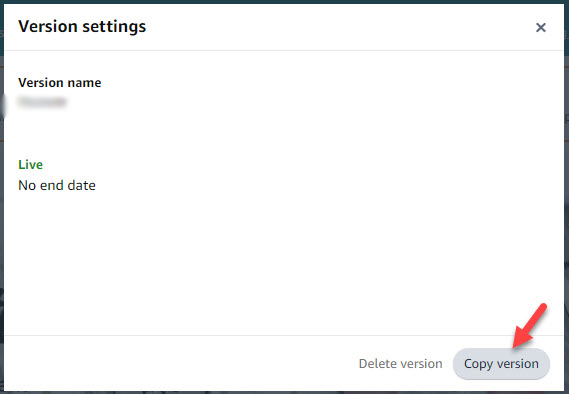 - Click Copy version button