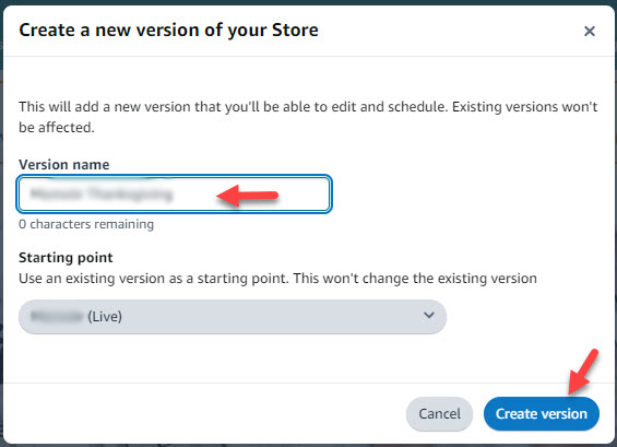 - Fill in the Version name box.