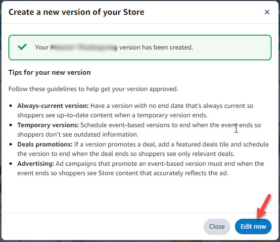 - Click Edit now to start customizing the new brand store version.