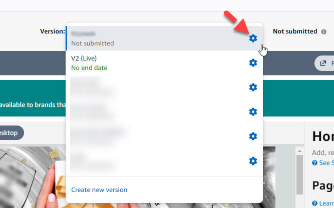 - Click the gear button of the version you want to duplicate.