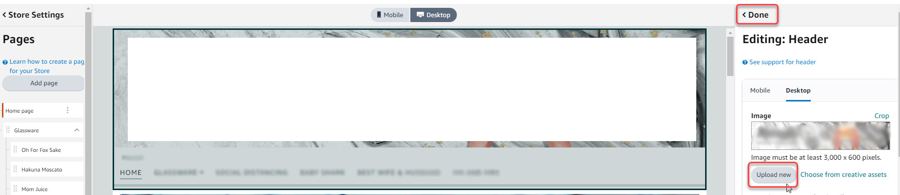 - Once the new hero image is uploaded, click Done.