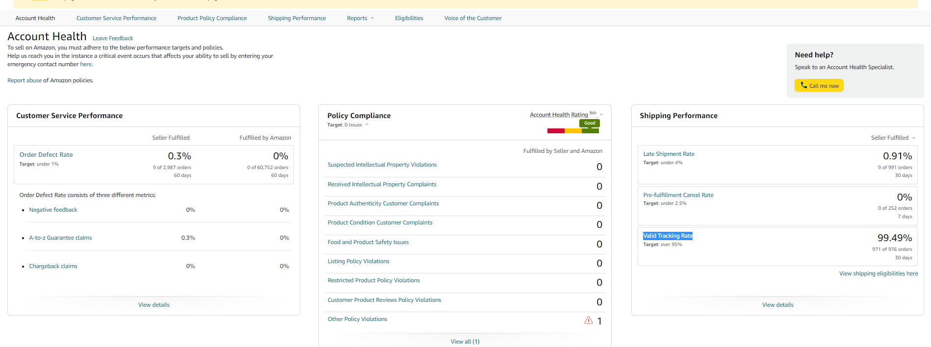 We will review our account health dashboard regularly to see the issues and take precautions on time. If any problem appears on the account health page, we will take care of it immediately.