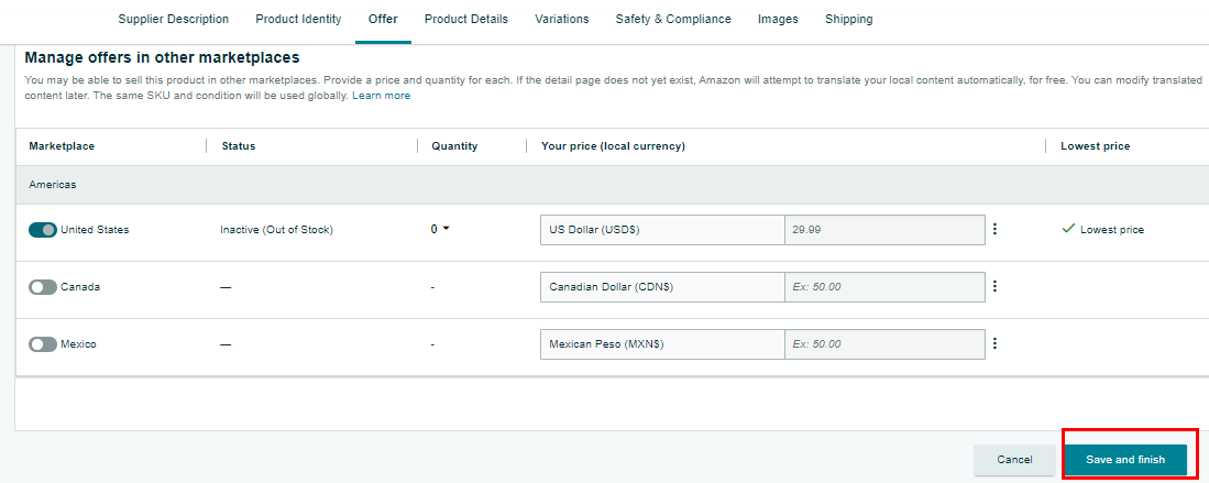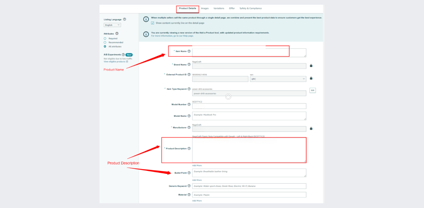 Note: You can update the title, bullets, and description in two ways. One would be through each listing within the Manage Inventory page and the second method would be using flat files.