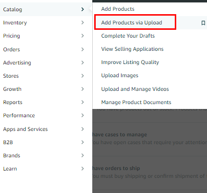 2. Once you’ve logged in to your Amazon Seller Central account, click on ‘Add Products via Upload.