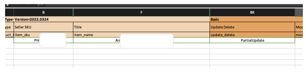 Rule of thumb! If you are only told to update a certain attribute, only fill in the SKU, the attribute that you need to change, the fulfillment center, and only use a partial update.