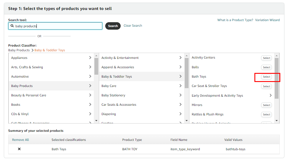 5. Now you’ve got to find the inventory file that’s relevant to the product, there are lots of different flat files depending on what category the product falls in. If, for example, the category is baby products, type that into the search field and click on ‘Search’:
