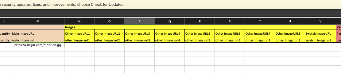 5. Open your flat file and paste the Direct Link into the images URL column and upload your file.