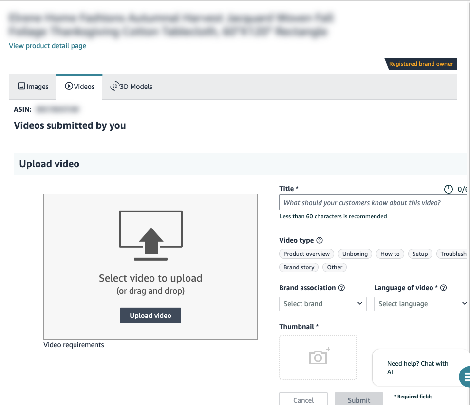ASINs where the video should be displayed on the PDP.