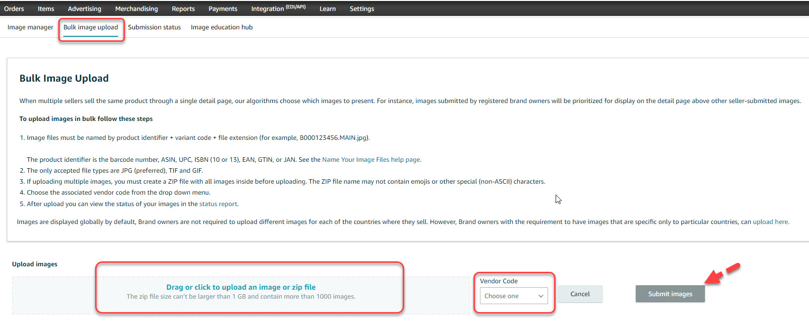 NOTE : If we have ASINs selling in different marketplaces and the language on the images is country-specific, we must upload them through the country-specific upload to avoid issues