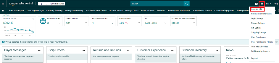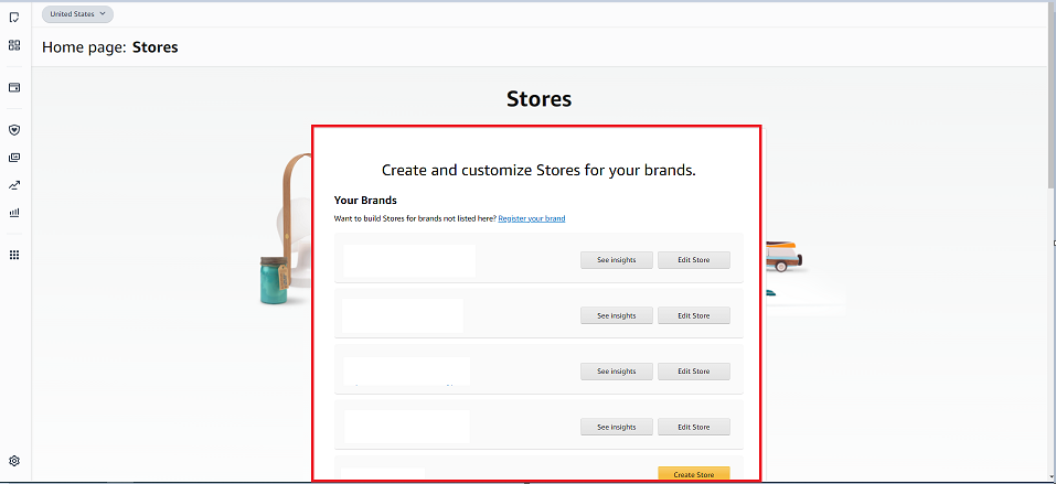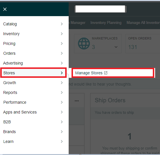 1. Go to Seller Central, navigate to "Stores," and then select "Manage Stores."
