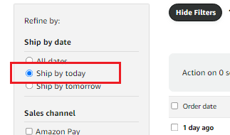 3. On the left navigation portion, please select Ship by Today
