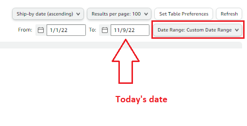 5. On the lower right of the page, select "Results per page" and select "100" so we can see the maximum number of orders that can be displayed on a single page.