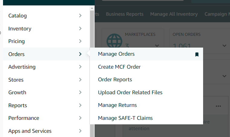 2. Go to the Orders tab and choose Manage Orders