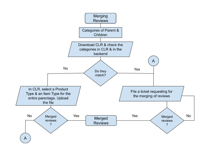The main reason for reviews not merging is that the Product Type & Item Type categories don’t match within the parentage. Our goal is to make them similar throughout the parentage.